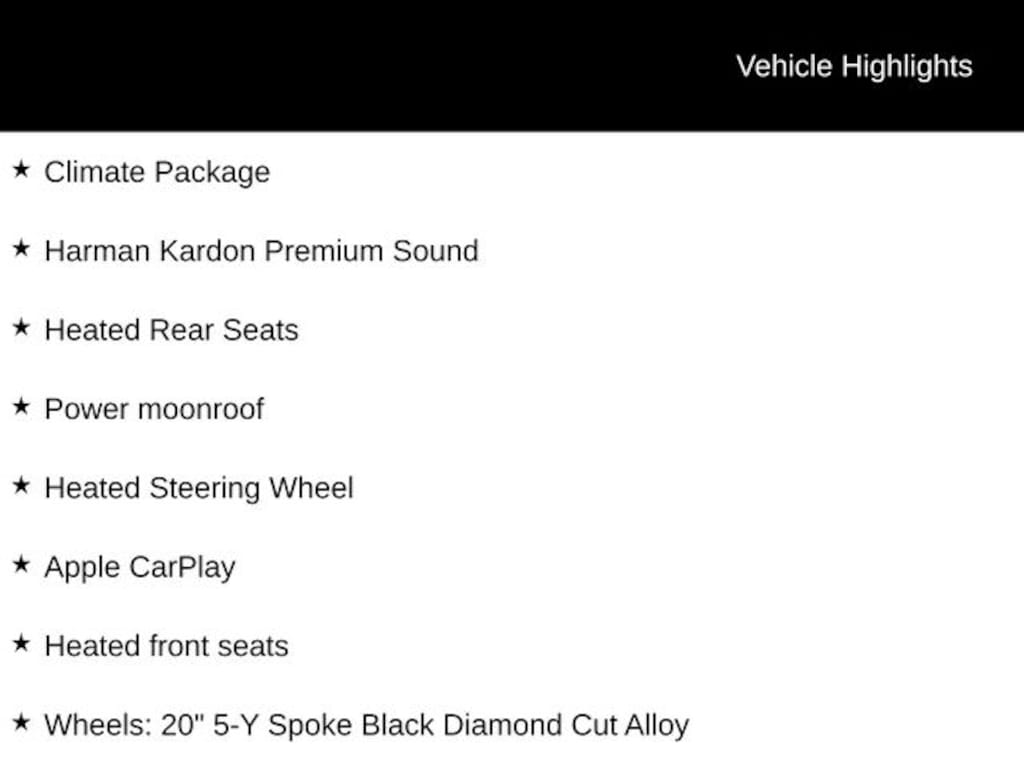 ⢠Wheels: 20" 5-Y Spoke Black Diamond Cut Alloy