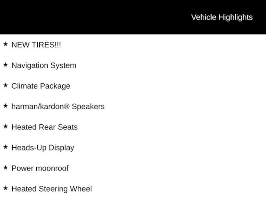 NEW TIRES!!!, Apple CarPlay, Climate Package, harman/kardon® Speakers, Heads-Up Display, Heated & Ventilated Front Bucket Seats, Heated Rear Seats, Heated Steering Wheel, Navigation System, Power moonroof, Wheels: 21" 5-V Spoke Black Diamond Cut Alloy.