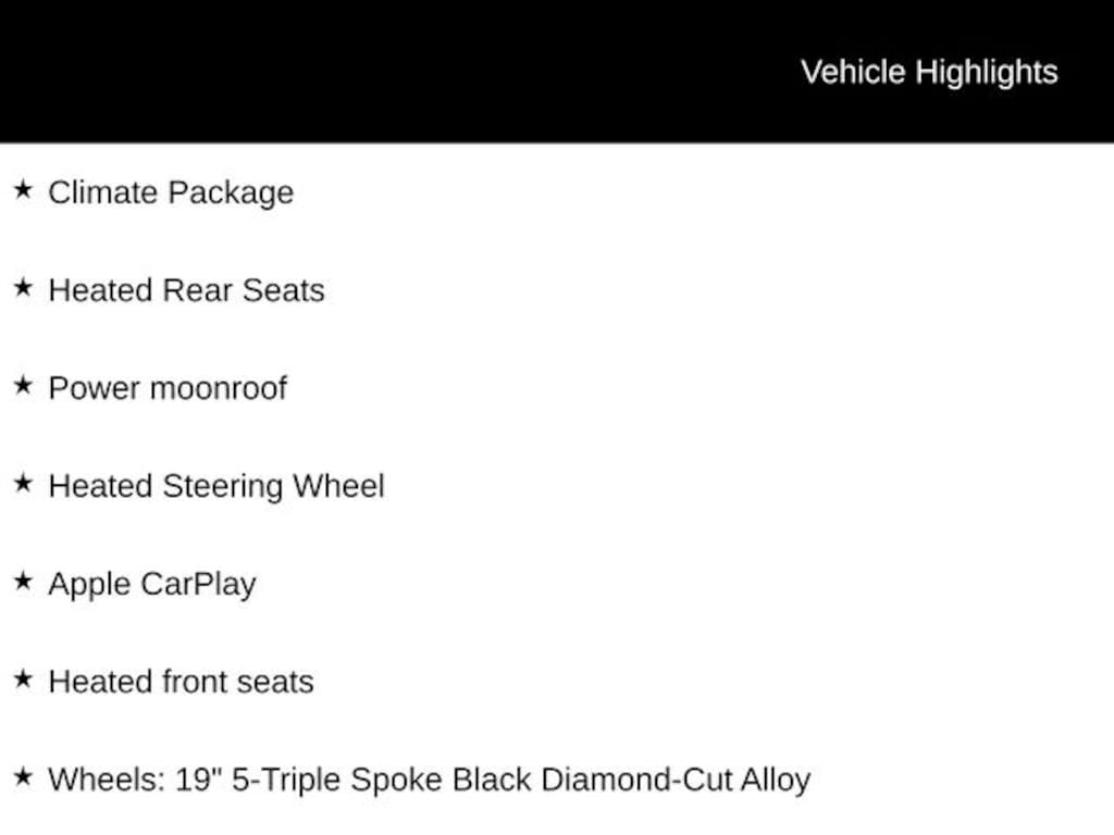 ⢠Wheels: 19" 5-Triple Spoke Black Diamond-Cut Alloy