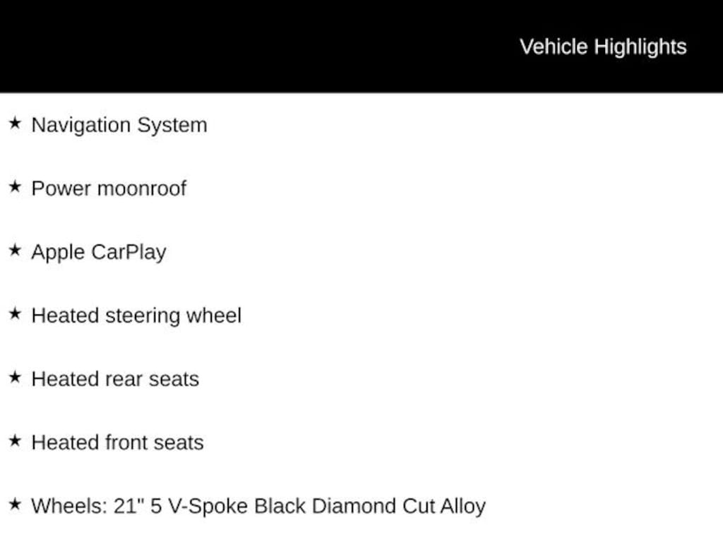 ⢠Wheels: 21" 5 V-Spoke Black Diamond Cut Alloy