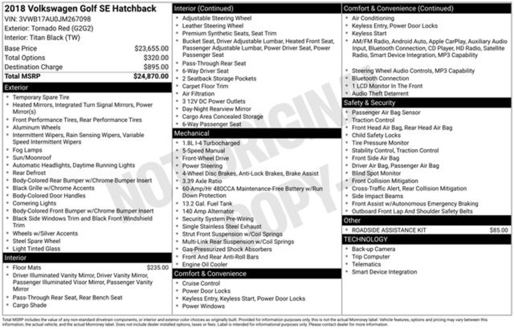 Used 2018 VolkswagenGolf TSI SE 4-Door Hatchback