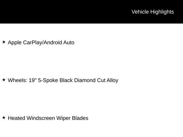 - Wheels: 19" 5-Spoke Black Diamond Cut Alloy